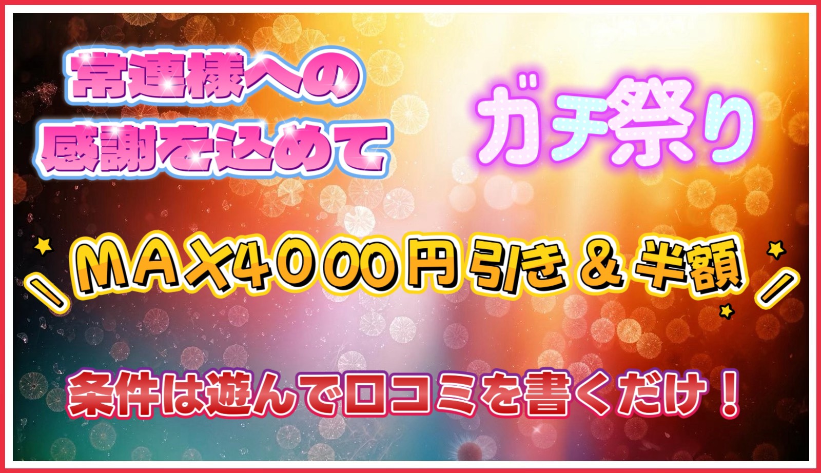 ※必ず『ガチ祭りの倍プッシュ/口コミ割を見た』とお伝えください